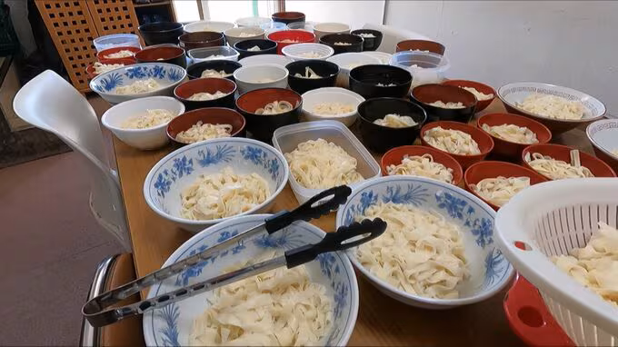 この日のメニューはきしめん。朝から50人前以上の麺を茹でるのに大忙しです。
