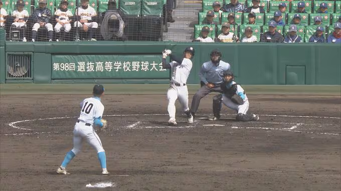大会8日目、2回戦で山梨学院と対戦した大垣日大は、1回。3番竹島のライトへのソロホームランで1点を先制します。