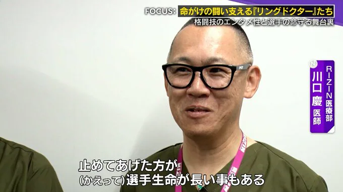 2025年12月31日―4万5000人もの観客を熱狂させたのは、日本最大級の格闘技イベント『RIZIN』。激しい攻撃が特徴で、けがが多いラグビーと比べても発生率は30倍とも言われるが…大会設立から10年経つ今も命に関わるけがはゼロ!その背景にはリングドクターたちの存在があった。『RIZIN医療部』を率いるのは、脳神経外科医の諫山和男医師。各病院から集まった格闘技好きの一流医師たちが試合に目を光らせる。その“裏側”に密着取材、ドクターたちの迅速な処置や、『ドクターストップ』の葛藤に迫った。