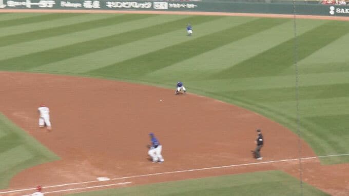 「セカンド田中、捕った!1塁送球!あーっ!サノーがまさかの落球!」