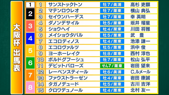 東京大学法学部卒のTBS篠原梨菜アナウンサー(29)が、GI・大阪杯をデータをもとにズバリ予想。2017年のGI昇格から今年で節目の10回目を迎える大阪杯。記念すべきレースを祝うかのように、クロワデュノールとダノンデサイルの2世代ダービー馬、去年の宝塚記念を制したメイショウタバルなど、豪華メンバーが参戦する。GIタイトルを持つ3頭が順当に制するのか、それとも新たなスターホースの誕生か、春の中距離王決定戦に注目だ。